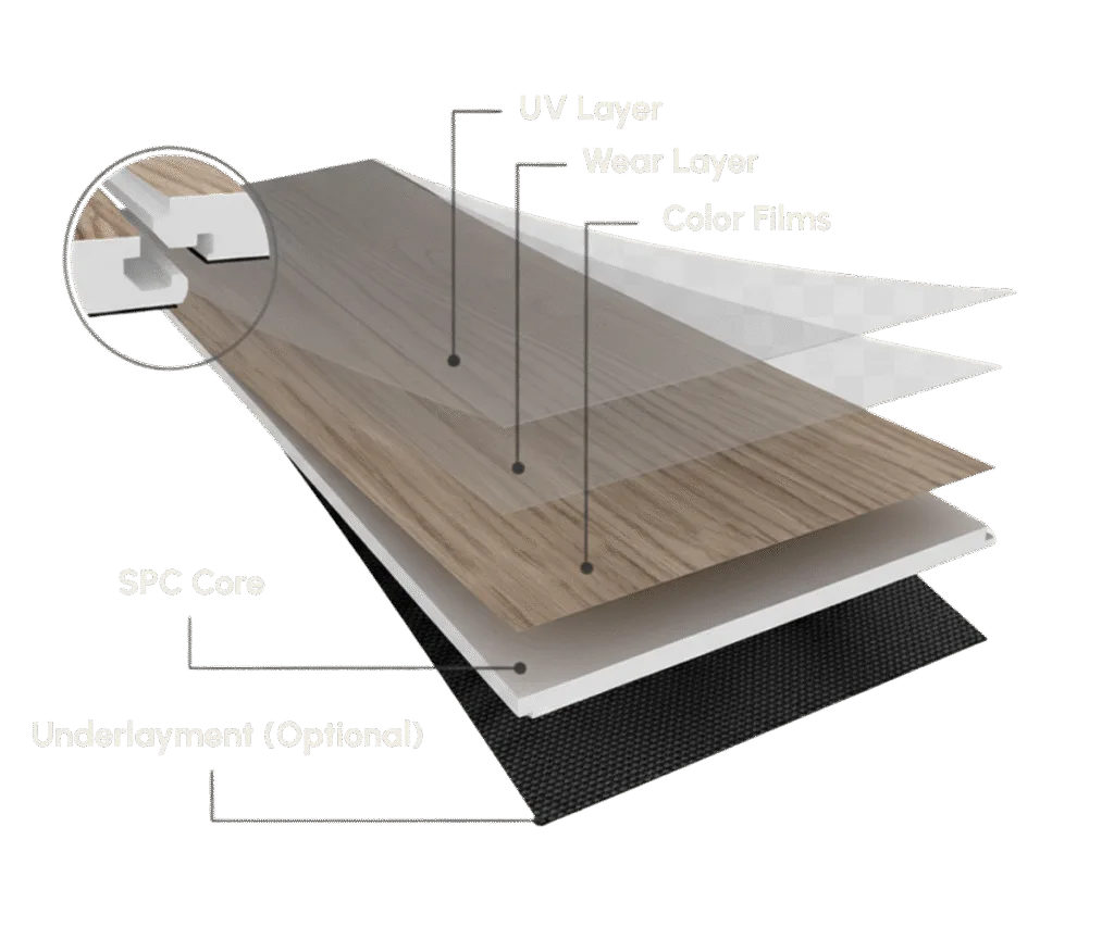 SPC (Stone Plastic Composite) vinyl flooring is a cutting-edge solution featuring an ultra-resistant core. This composition provides exceptional dimensional stability and superior durability, ideal for high-traffic areas.
